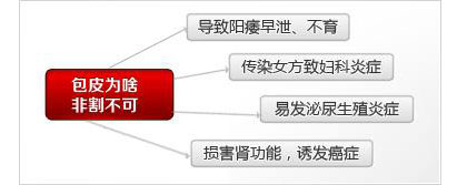 包皮过长、包茎会引发龟头包皮炎,一部分病人因细菌顺尿道向身体纵深发展,可侵犯前列腺、精囊、附睾、睾丸等男性生殖系统。易引起包皮炎和阴茎炎,特别患包茎的患者,大量的分泌液无法排出,淤积可形成包皮垢,造成包皮龟头炎反反复复发作。特别要指出的是,包皮过长或包茎带来的包皮垢,会诱发女性朋友妇科炎症。
